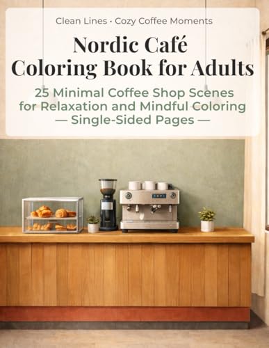Nordic Café Coloring Book for Adults: 25 Minimal Coffee Shop Scenes for Relaxation and Mindful Coloring — Single-Sided Pages