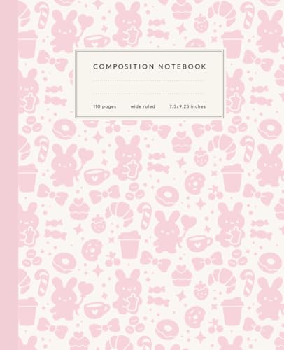 Composition Notebook: Coquette Pink Bow & Café Bunny Stationery | Wide Ruled | 7.5 × 9.25 in | 110 Pages | Cute Journal Notebook for School, Work & Writing