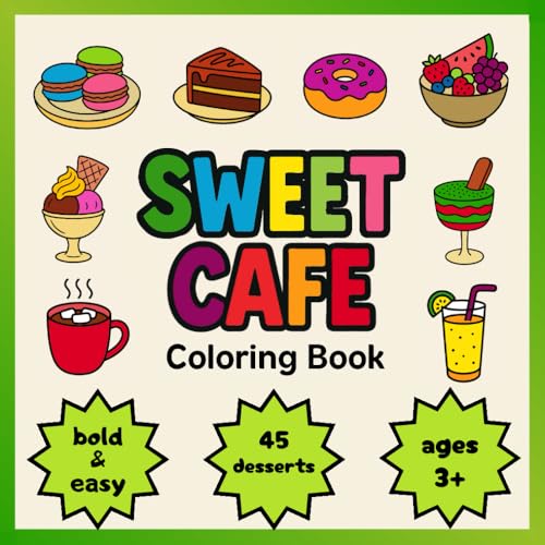 SWEET CAFE: Coloring Book | Fun and Educational Coloring Pages for Kids Featuring 45 Desserts | Simple Bold Lines: Cute and Sweet, perfect for gift, format 8.25'' x 8.25''