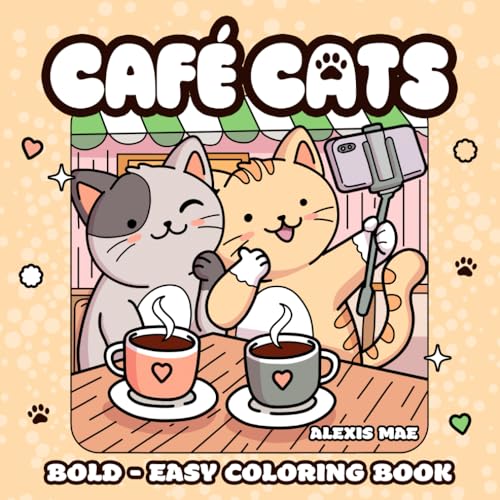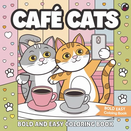 Café Cats Bold and Easy Coloring Book: Cute and Cozy Simple Art For Adults, Kids and Teens
