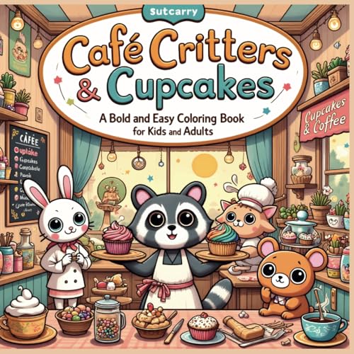 Café Critters & Cupcakes: A Bold and Easy Coloring Book for Kids and Adults ( Delight in cozy café vibes with adorable animals, cupcakes, and relaxing line art for all ages )