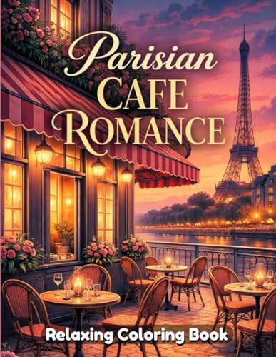 Parisian Cafe Romance Coloring Book for Adults and Teens: Romantic Paris Cafes, Cozy Street Scenes, Love Moments, Relaxing Line Art, Stress Relief Coloring Pages