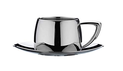 Café Stal DC-508 Art Deco 18/10 rostfritt stål espressokopp och fat med cool touch ihåliga handtag, spegel polerad
