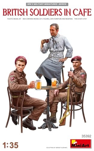 Mini art 550035392 MiniArt 35392 1:35 Fig. Storbritannien Soldater i café (3) – originaltrogen kopia, modelltillverkning, plastbyggsats, hantverk, hobby, limning, modellbyggsats, montering, omålad,