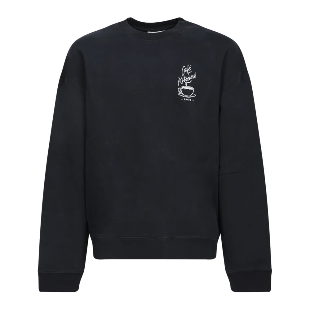 Maison Kitsuné, Sweatshirts & Hoodies , Herr, S, Svart Sweatshirt med Café Fox-grafik