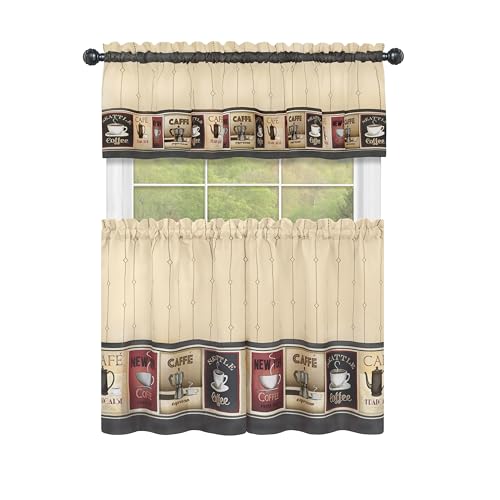 Achim Heminredning Mysig Café Tryckt Nivå & Valance Set - 147 x 91 cm solbränd svart