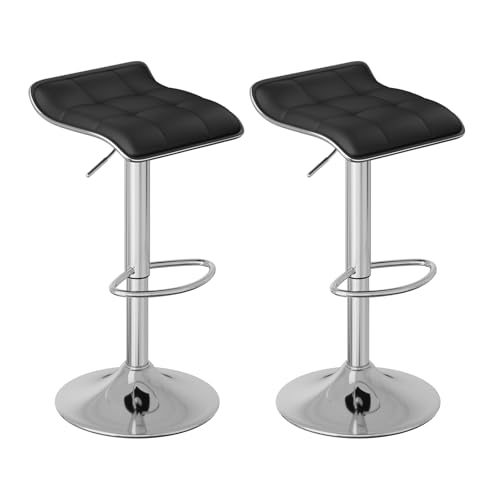 WOLTU Barstolar Set om 2, Barstol, Bänkpall med Fotstöd, Justerbar i höjdled, 360° roterbar, Tillverkad av PU-lädermetall, för bar, kök, vardagsrum, disk, café, svart