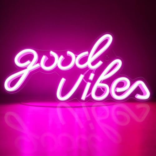 Good Vibes neonskylt, LED-neonskyltar med på/av-adapter för väggdekoration, affärsljus up-skylt för bar salong butik café restaurang butik klubb lekrum väggkonst dekoration (lila)
