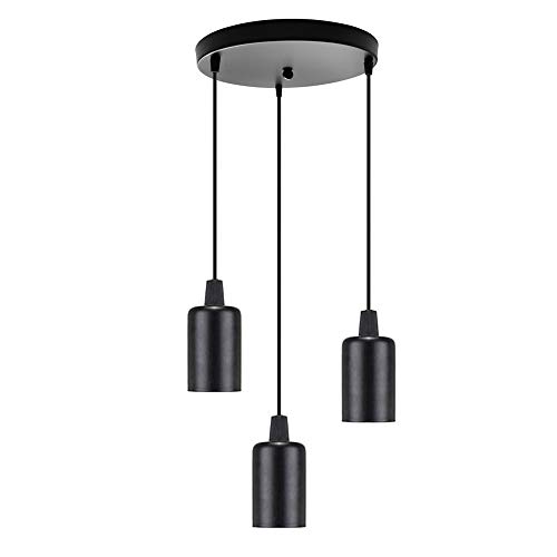 3 lampor Industriell taklampa, Vintage metall Edison stil ljuskrona E27 taklampa för kök café bar, 22cm, svart