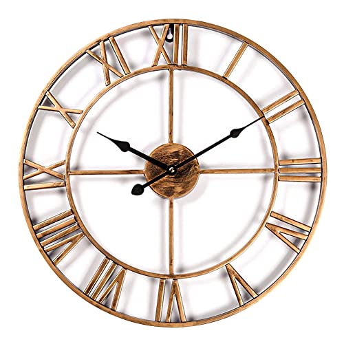 Taodyans Vintage tyst väggklocka, 40 cm skelett metallklocka, vardagsrum kök café hotell kontor heminredning klocka (Brons)