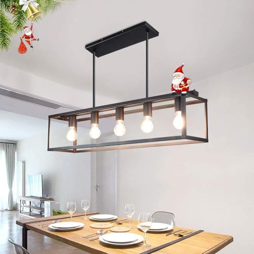 Depuley Vintage pendellampa med 5 lampor, LED-hängande lampa matbord järn, E27-sockel, 5 x 6 W lampor, hängande lampa, kök industriell för vardagsrum restaurang café bar (6 W glödlampa inkl.)