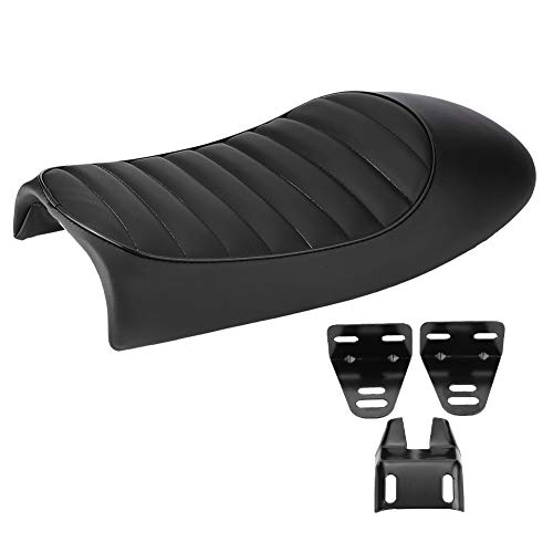 Akozon Vintage Cafe Racer PU Läder Motorcykel Sadelsäte Platt säte för CG125 GN CG CB400SS (C)