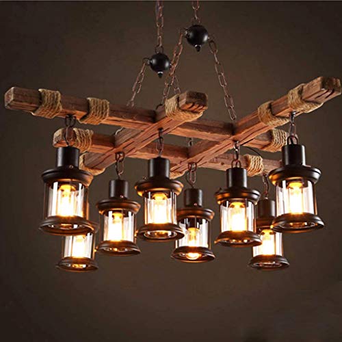 Vintage Taklampa E27 Trä Taklampa Retro Taklampa Industriell Ljuskrona Höjdjusterbar Svart Järn Och Glas Lampskärm Taklampa För Vardagsrum Matsal Bar Café Taklampa Gjutjärn, Vintage Loft(8 heads)