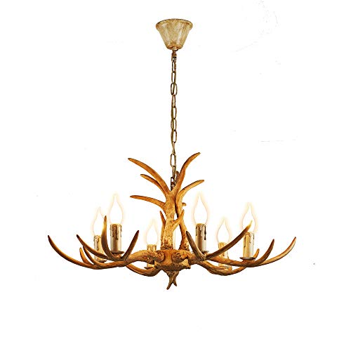 OUKANING Hjorthorn ljuskrona, hjorthorn 6 ljus vintage stil taklampa amerikansk lantlig landsbygd horn ljuskronor för vardagsrum, bar, café, matsal