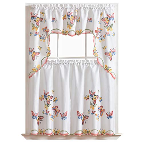 3 st köksgardin/cafégardin-set, luftborstad för hand av flygande fjärilsdesign av GOHD