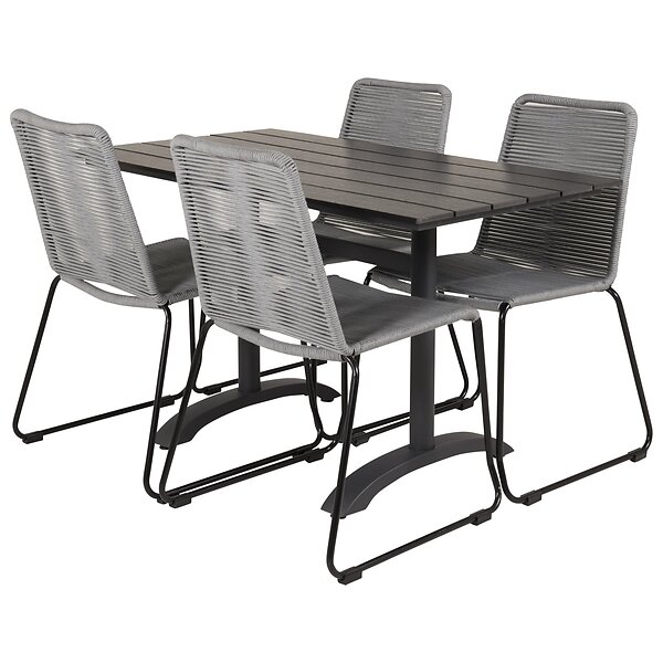 Venture Design Cafégrupp Dolly med 4 Leon Matstolar DenverCaféBord 120*70-Svart Alu/Svart+Lindostol-Svart/Grå4 GR18216