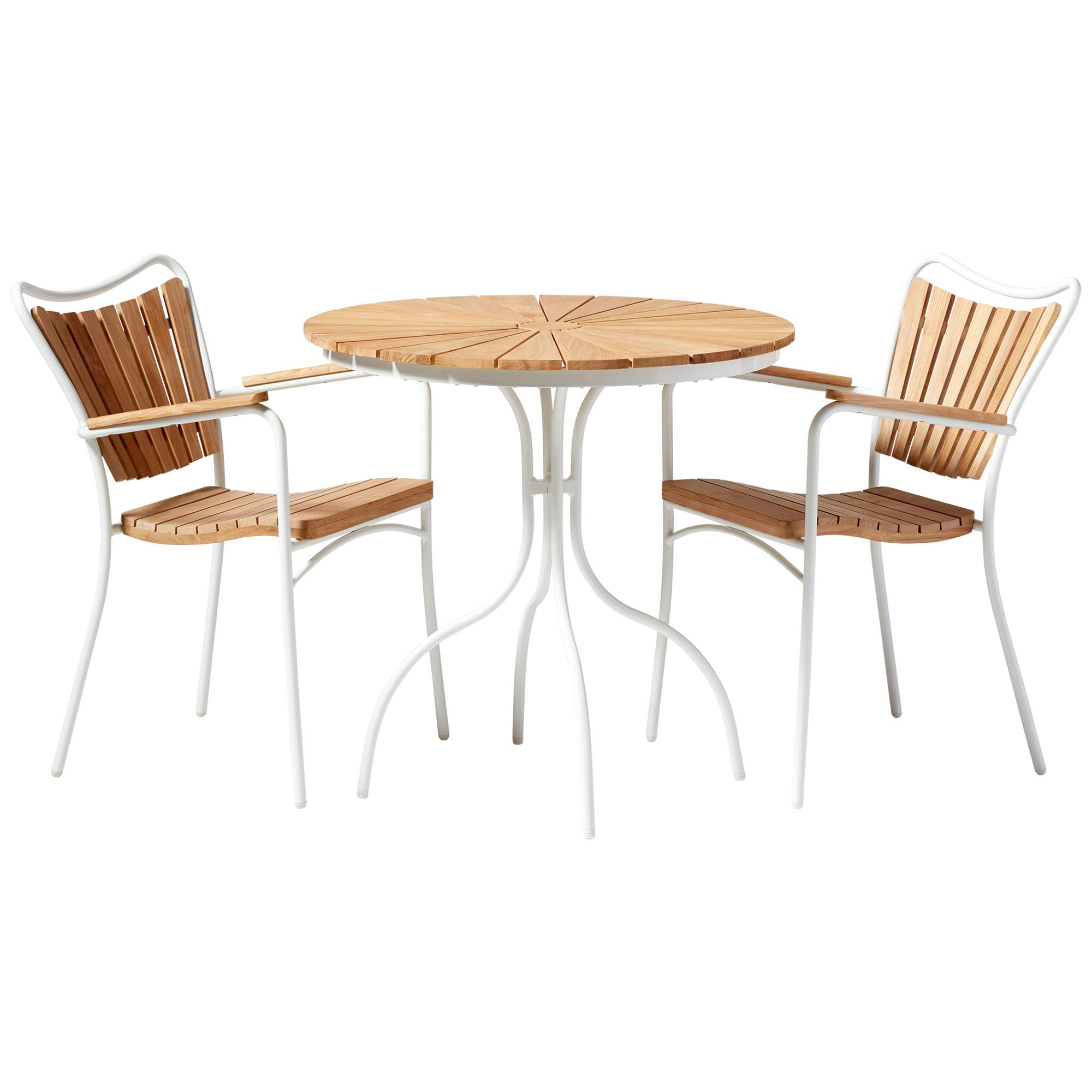 Cinas Ellen cafégrupp Vit med teak 2 stolar & bord 80 cm
