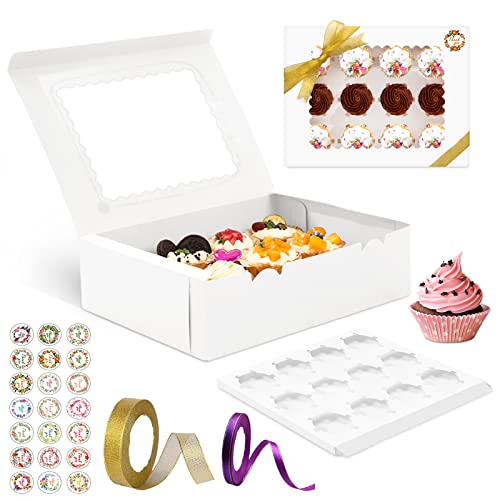 YUTUY 15 stycken cupcakebox, cupcake-muffinslåda med fönster, cupcake-låda, muffinslåda med rep och klistermärken, tårtlådor, cupcake-lådor för makroner, cupcakes, bröd, kakor