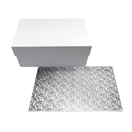 Miss Bakery's House® Kaklåda med MDF-skiva - Set 762: transportlåda 40x30x15 cm - vit - cake box och stabil rektangulär tårtbotten i träfiber - 30x40 cm - silverbelagd
