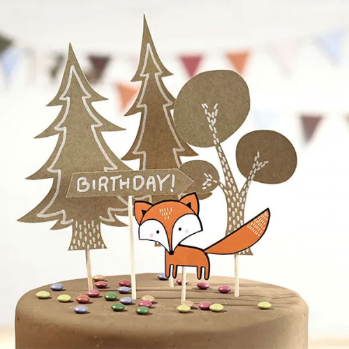 PartyDeco Cake Toppers Skogsdjur, Woodland -