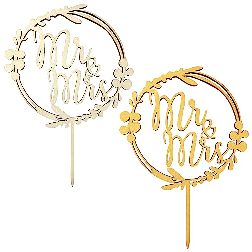 2 st Bröllopstårta toppers, trä bröllopstårta topper Mr and Mrs Cake Topper Personlig tårt topper för bröllopsfesttillbehör (2 färger)