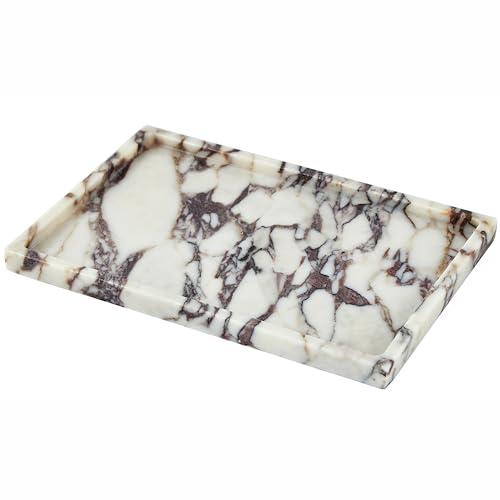 Denique Naturlig marmorbricka för badrumsbänk, sminkbricka sten förvaringsbricka för heminredning, 30 x 20 cm äkta Calacatta Viola marmor badrumsbricka för köksbyrå