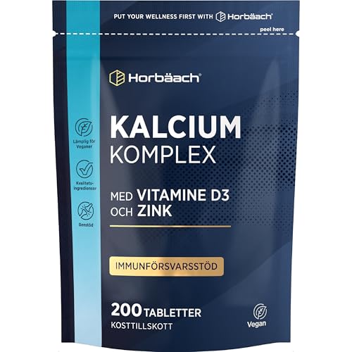 Kalcium Tabletter med Magnesium, Zink och Vitamin D3 | 200 Veganska Tabletter | Calcium Magnesium Zinc Vitamin D3 Supplement | by Horbaach