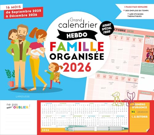 Grand calendrier hebdo Famille organisée 2026: 16 mois, de septembre 2025 à décembre 2026