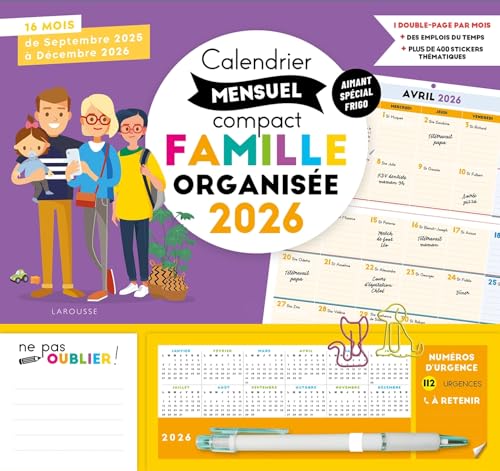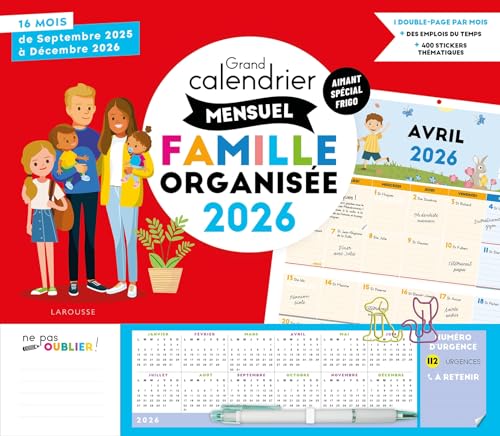 Grand calendrier mensuel Famille organisée 2026: De septembre 2025 à décembre 2026