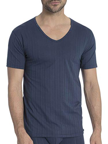 CALIDA Pure & Style T-shirt för män, med V-hals, gjord av mjuk PIMA-bomull, maskulin nåldragsko, andas, snabbtorkande och lukthämmande, Blå (Indigo Mood 509), 50 SE