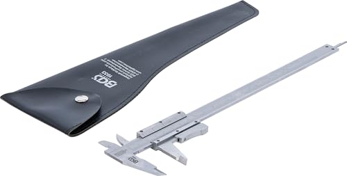 BGS 1933 Precision Vernier Calliper, 0 - 200 mm, förkromad, med läderfodral, Nonius 1/20 mm, mått: invändig/extern/djup, finjustering