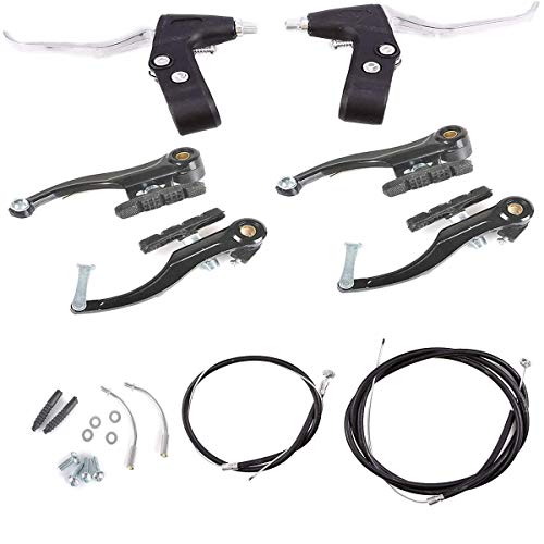 Prettyui Mountain Road Bike bromsspakar V-bromssats främre bakre kablar kit inkluderar Calliper, spakar, kablar och alla fästen svart