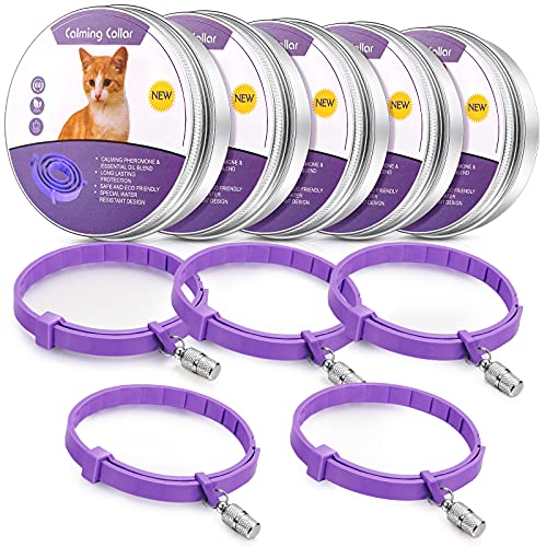 Weewooday 5 Set Calming Collar for Cats Adjustable Waterproof Cat Calming Collars Reduce Anxiety Stress Cat Collars with 5 Pet ID Pendants (Purple)
