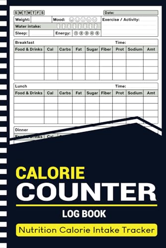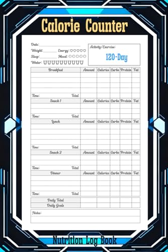 Calorie Counter Log Book: Daily Nutrition & Calorie Intake Tracker for Your Meals, Protein, Fat, Carbs, Fiber, Sugar, and Sodium