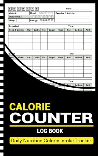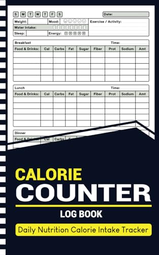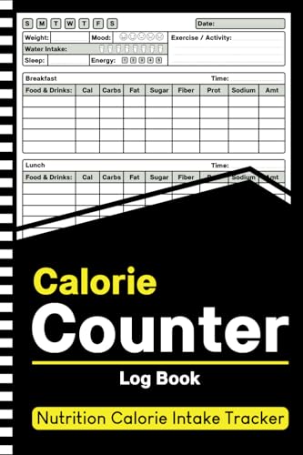 Calorie Counter Log book: 5 x 8 Inches – Daily Nutrition & Calorie Intake Tracker for Your Meals, Protein, Fat, Carbs, Fiber, Sugar, and Sodium