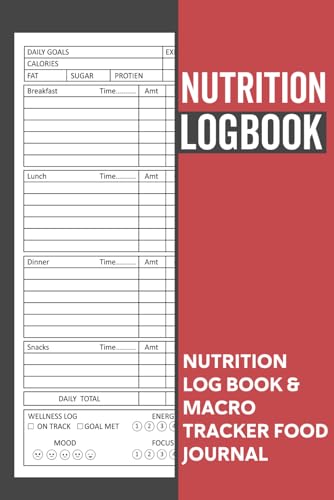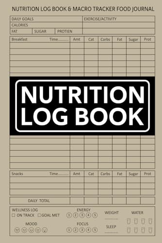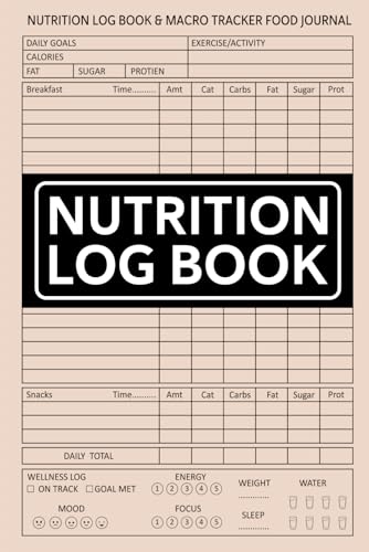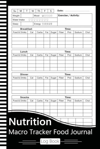 Nutrition Log Book & Macro Tracker Food Journal: Daily Foods Intake Tracking & Calorie Counter For Logging Meals, Protein, Fat, Carbs, Sugar, Sodium, Fiber, And Cholesterol.