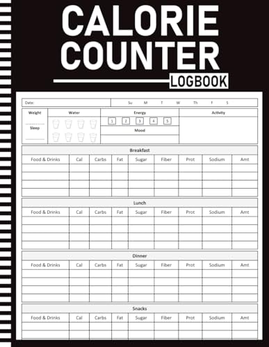 Calorie Counter Log Book: Daily Nutrition Journal to Track Meals, Calories, Carbs, Protein, Fat, Fiber, Sugar & Sodium