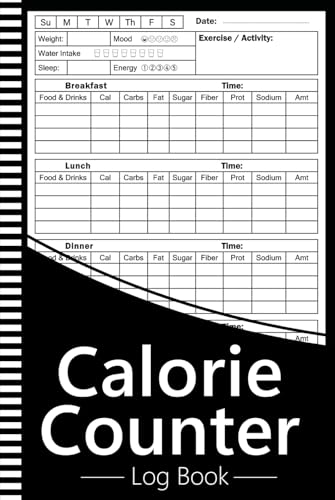 Calorie Counter Log Book: Track your daily, meals, Protein, Fat, Carbs, Fiber, Sugar, Sodium macros, water intake, and exercise with this simple and effective for a healthier lifestyl