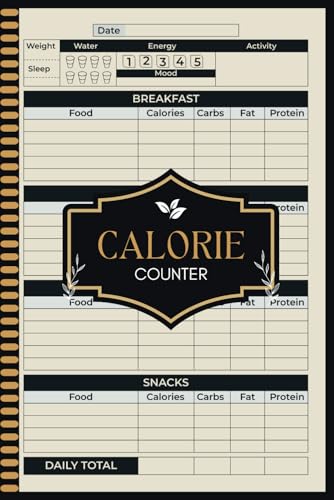 Calorie Counter Log Book: A Simple Daily Food Diary to Achieve Your Weight Loss Goals by Tracking Meals, Calories, Carbs, Fat, Protein, & More