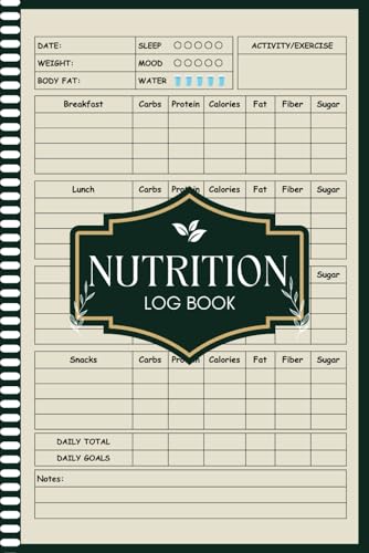 Nutrition Log Book: Daily Food Intake Log For Keeping Track Of Your Meals, Carbs, Calorie, Fat, Protein, Sugar, Sodium & Fiber -Carb and Calorie Counter Book