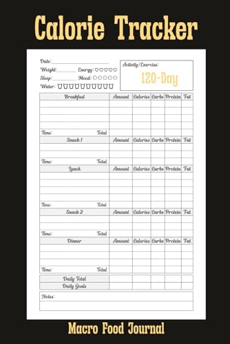 Calorie Tracker & Macro Food Journal (120-Day): Daily Calorie Counter Book, Meal Tracking for Calories, Carbs, Protein, and Fat. Diet & Nutrition Log ... Eating Goals. (6x9) Inches, 125 Pages.