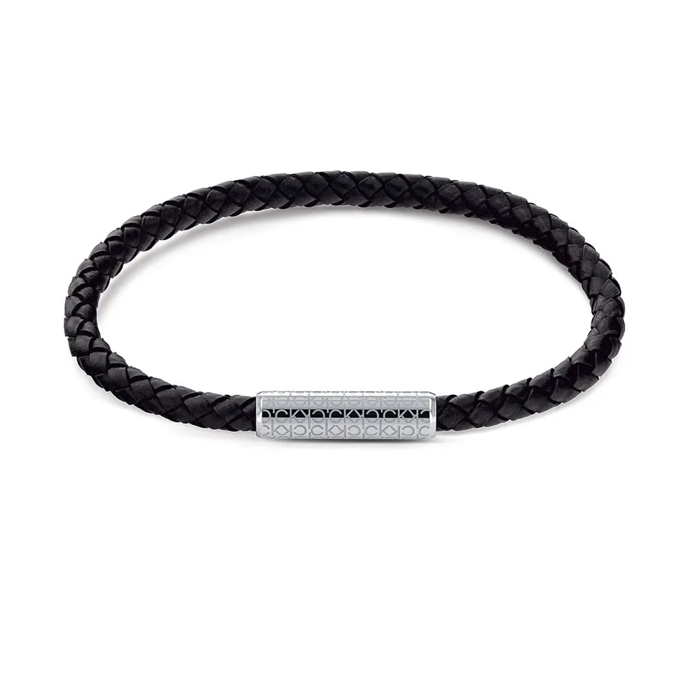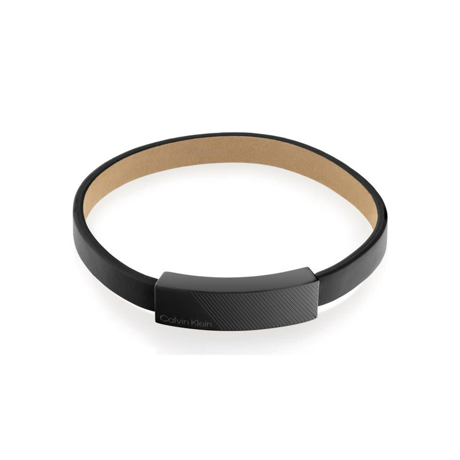 Calvin Klein mäns MINIMALISTIC FYRKANTIKOR Kollektion Armband med svart läder och rostfritt stål stängning - 35100062