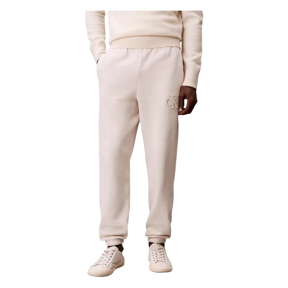 Calvin Klein, Byxor , Herr, S, Bomull, Beige Sportig Broderad Herrbyxa