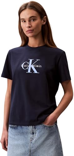 Calvin Klein dam-t-shirt kortärmad Hero Classic Monologo Tee med rund hals, Blå (Dark Safire), M