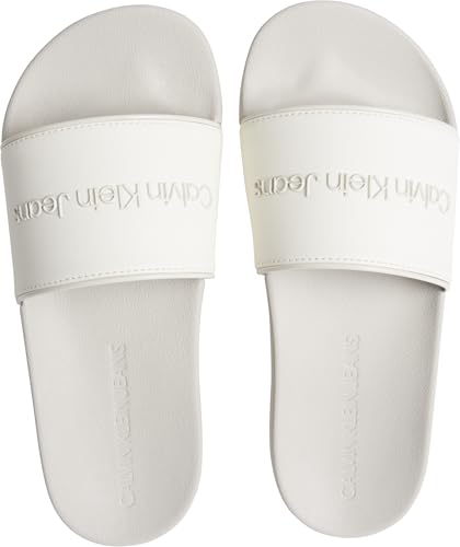 Calvin Klein Jeans kvinnors Slide INSTITUITIONAL MTR Flip Flops, äggskal/krämig vit, 7 UK, Äggskal krämig vit, 40 EU