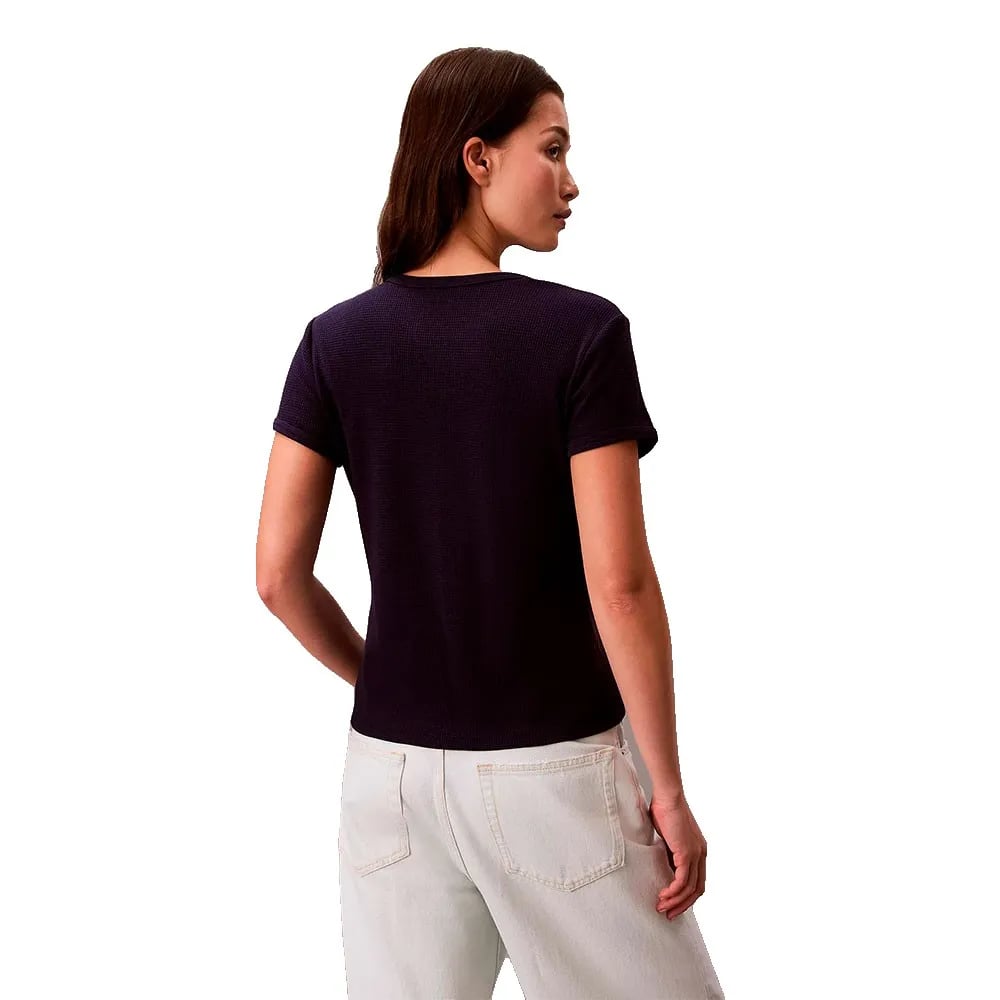 Calvin Klein Jeans Monogram Patch Waffle Slim Fit Short Sleeve T-shirt Blå,Lila M Kvinna