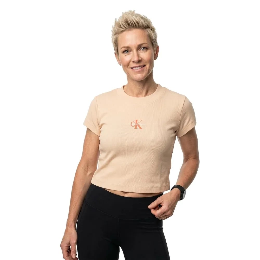 Calvin Klein Jeans Monogram Baby Short Sleeve T-shirt Beige S Kvinna