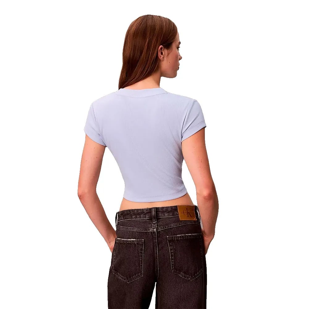 Calvin Klein Jeans Monogram Patch Waffle Slim Fit Short Sleeve T-shirt Blå,Lila L Kvinna