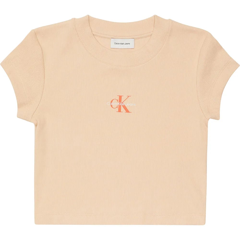 Calvin Klein Jeans Monogram Baby Short Sleeve T-shirt Beige XS Kvinna