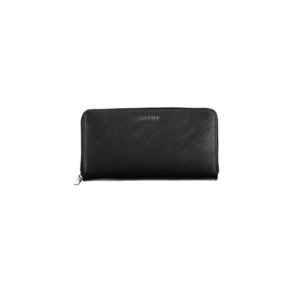 Calvin Klein, Accessoarer , Dam, ONE Size, Läder, Svart dragkedja plånbok